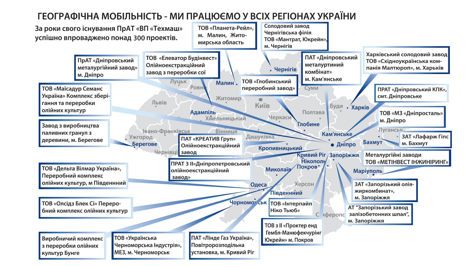 ПРАТ «ВП «ТЕХМАШ» спеціалізується на виконанні всього комплексу робіт із впровадження проектів: